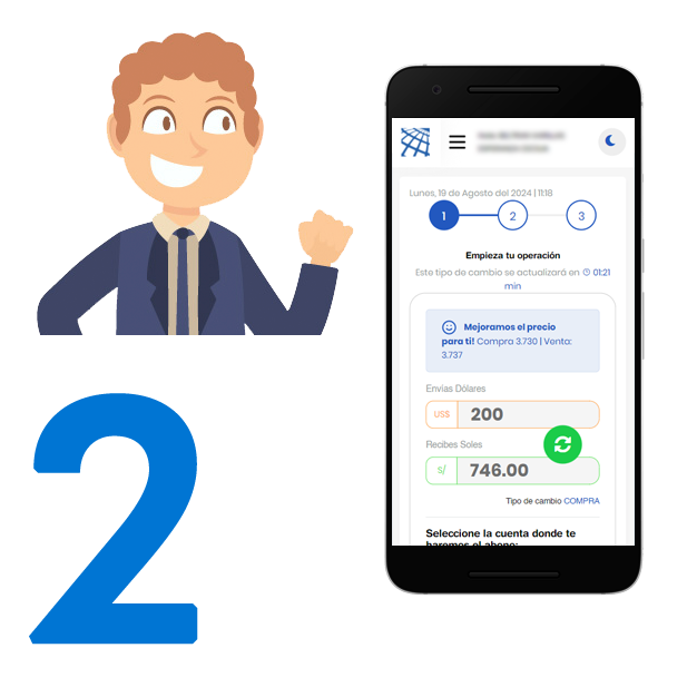 Transfiérenos la cantidad que deseas cambiar ya sea dólares o soles y envíanos el número de operación.